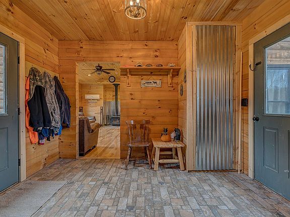Come home to serenity & privacy in your own cabin in the woods w year round Mountain View. Original cedar sided cabin w brand new log addition completed this year. Original cabin has brand new kitchen w hickory cabinets and new upgraded tile floors. Large walk-in pantry for all your storage needs. One bedroom is off the kitchen and an open loft for a 5th bedroom & separate office. It also has its own heat pump and wood stove. Real log addition has tiled mudroom with 3 more bedrooms and living room boasting hickory hardwood floors. Master bedroom has French doors with a Mountain View and boasts en suite full bathroom w vintage claw foot tub. &, it mini split system for individual room climate control and an additional wood stove Unfinished walkout basement with laundry room and climate