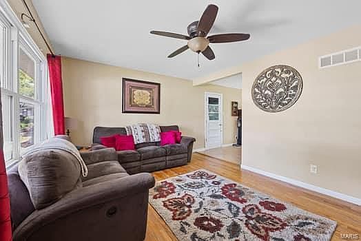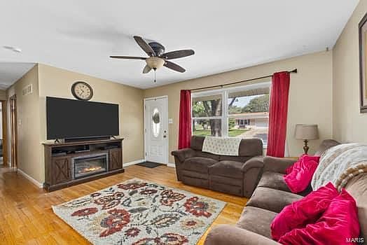 Super clean 3 bed 1 bath ranch home ready for new owners. Gleaming hardwood floors throughout most of the main level. 3 generous sized bedrooms with over head lighting/ceiling fans. Spacious living room with large window for lots of light. The spacious kitchen/dining combo features oak cabinets, drop in sink, classy faucet, built in microwave and granite look countertops. All appliances to stay. Bathroom, has newer vanity and flooring. Basement walks out to large fenced yard with privacy and mature trees. The home also has newer vinyl windows and storm door as well. This home is in the coveted Francis Howell North Schools. Come see this great home before it's gone! PICTURES COMING SOON!
