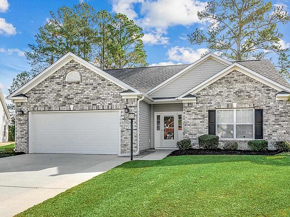 Come venture into the established community of Sun Colony where you will find this lovely single-level home located directly on the Colonial Charters golf course. This distinguished brick home is situated on nearly a quarter of an acre with a serene view of the trees and pond. This fully-furnished home is completely move-in-ready and it would make a great second home or primary residence. As you enter through the foyer, you will notice smooth vaulted ceilings along with a spacious open concept and a split floor plan. Hardwood flooring has been installed throughout the entire living room and all of the bedrooms. The kitchen has an abundance of upscale upgrades such as granite countertops, stainless steel appliances, and modern shaker-style cabinets along with a subway tile backsplash and a breakfast bar. There is a big pantry and a bay window in the dining area, which creates a romantic space where you can enjoy the remarkable view while you have dinner. The spacious 14x18 owner's suite has a walk-in closet along with a tray ceiling and plenty of room for a sitting area or home office. You can rise and shine with a spectacular view from your bed. The en-suite bath features a custom shower and a stylish vanity with dual sinks. The big 14x14 Southern-style screened-in porch overlooks the serene golf course and it provides a tranquil environment where you can relax. You can enjoy the beauty of nature from the comfort of home. There is a patio made of pavers outside where you can grill out with your loved ones. This wonderful home has been very well maintained by the owners and they are even offering a warranty for extra peace of mind. The roof was replaced with architectural shingles in 2022. The washer and dryer will convey along with all the window treatments. There is an irrigation system and fresh mulch was recently added. Pets, golf carts, and motorcycles are allowed. The hoa fees include cable and internet. There is a clubhouse with a community pool where you can take a dip and lounge around in the sunshine. This community is close to everything that The Grand Strand has to offer. There are several top-notch golf courses nearby along with delicious restaurants and places to shop. Sun Colony is located in the award-winning North Myrtle Beach School District. This is truly a must-see and you don't want to miss out! Schedule your showing today and don't forget to check out the virtual tour! Square footage is approximate and not guaranteed. Buyers responsible for verification.