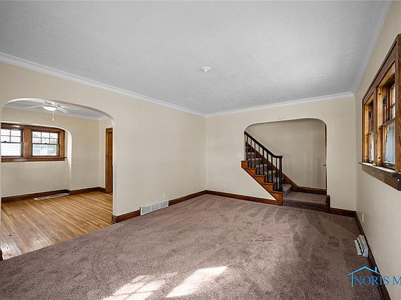 3 bedroom, 1 bathroom 1,366 sq. ft home. Formal dining room with hardwood floors. There is plenty of storage in the kitchen, which includes a breakfast nook with additional cabinets and counter space. Some original wood work in this home. A lot of updates have been done. The majority of the windows are updated. Vinyl siding offers a low maintenance exterior. Off street parking available in the drive way. Fenced in yard. Updated electrical with a breaker box. Updated mechanics which are fairly newer. Full basement with an extra room. Within walking distance to The University of Toledo.