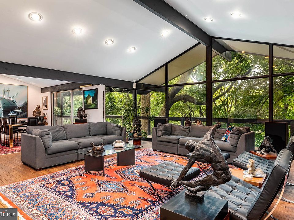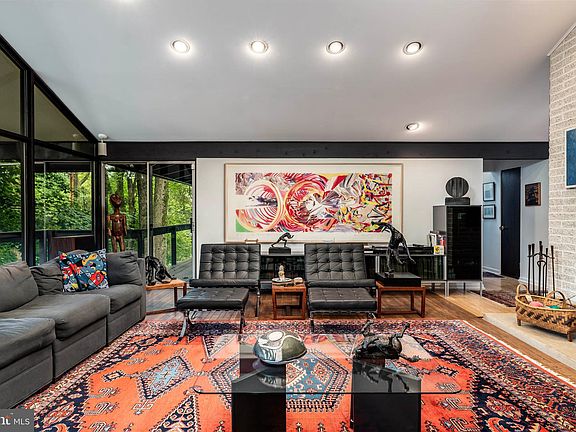 This special McElroy Contemporary is situated on an approximately one acre of private wooded land in the award-winning Lower Merion school district. This classic home features a Mid-Century Modern open floor plan with soaring ceilings and gorgeous windows throughout that let natural light through and provide picturesque year-round views. Enter the open foyer with vaulted ceilings, hardwood floors and an open staircase to the lower level. The living room features a wood burning fireplace and floor-to-ceiling windows that extend into the connected dining room with sliding door access to the full surround porch. The spacious eat-in kitchen follows the mid-century aesthetic while offering modern amenities featuring granite countertops and center island, ceramic tile floor, sub-zero refrigerator, and custom cabinetry. The cozy den is adjacent to the kitchen with a built-in audio system and cabinetry. The primary bedroom suite is found off the living area and includes ample closet space and a beautifully updated bathroom with a double sink vanity and gorgeous frameless glass shower. The laundry room and 2 powder rooms complete this level. The lower level of the home offers a huge recreation room with a brick wood burning fireplace and bar area, making it the perfect place to entertain. The additional four bedrooms are found on this level with 2 two full bathrooms. Additional features include the three-car garage, a whole house generator, maintenance-free exterior composite cladding, and an in ground pool. Tucked away and private, yet in proximity to some of the best shops and restaurants, the Main Line can offer, as well as parks, clubs, and easy access to I-76. Do not miss your opportunity to own this wonderfully unique home! 2022-08-12