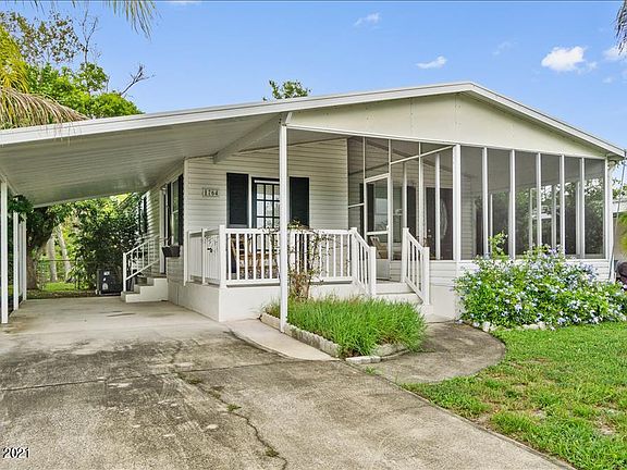 Welcome to Palm Bay Colony's 55+ community! This quaint home has 2 bedrooms and 2 bathrooms with a lovely screened porch out front. Master offers access to backyard and double sinks in master bath. Enjoy your privacy in the backyard with a deck and private storage.