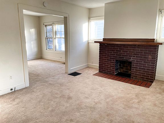 Cozy bungalow with some prairie school influence. Low sheltered front porch. Brand new carpet and bright white paint throughout. Front living room features decorative (blocked up) fireplace in classic brick with solid wood mantle. Bright formal dining room. Kitchen with walk-in pantry. 2 comfortable main level bedrooms. Bathroom has white vanity and freshly caulked tub/shower. Large unfinished basement with cellar room and laundry hookups. Deep back yard with large shade trees, concrete parking pad, and room for additional vehicles in front and back. Could use some cosmetic touch-ups, but clean and move-in-ready!