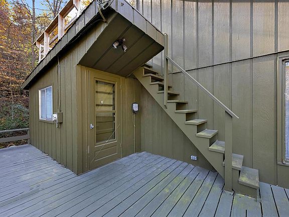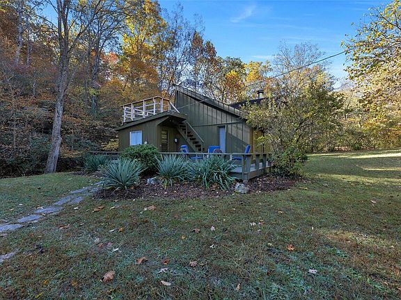 Fabulous opportunity to own to this quaint 2 bed, 1 bath cabin nestled on 36 acres of private, wooded acreage. Its remote location makes it a serene getaway to nature, yet only minutes to town. Walk into the cozy family/dining room space with vaulted ceilings and enjoy the woodburning stove and blissful views of nature. Kitchen includes a stove/oven, refrigerator and ample storage. Down the hall is the primary bedroom with multiple windows for natural light and a full bath. Upstairs find an open loft space with room for a second bed. Outside features a large, ground level and second level deck with beautiful views of the nearby creek. The property also includes a 4 person bunk house for additional guests. Walk the picturesque bridge over the creek, leading you to the barn. House has central electric, heat and well/septic, making it move in ready and the ideal weekend getaway or cozy cottage lifestyle. Numerous creeks, a cave, waterfall and abundant wildlife reside on the property.