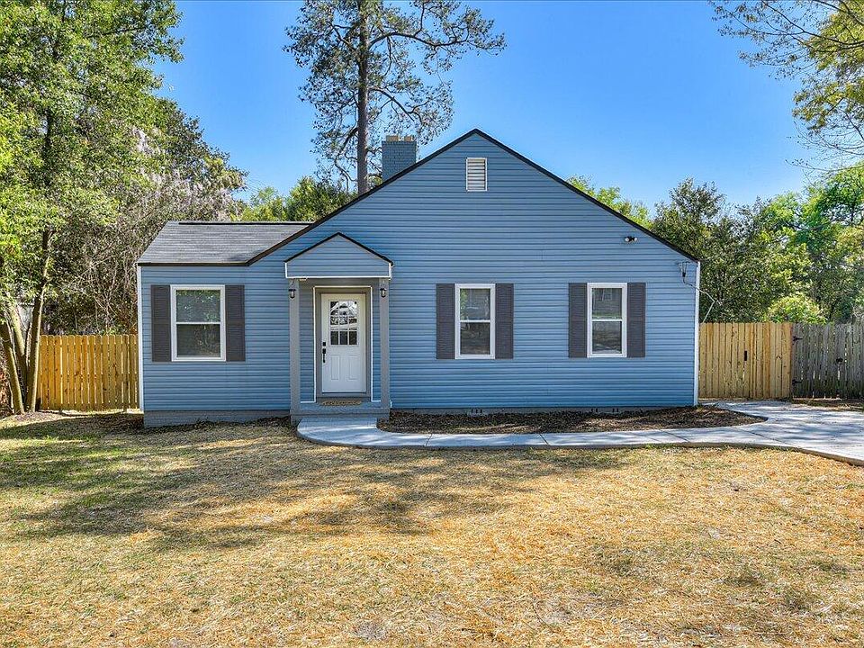 Beautifully renovated bungalow home conveniently located near Pendleton King Park! Hardwood flooring greets you as you enter the living room which invites you to relax in front of the fireplace. The kitchen shines with new cabinets featuring soft close hinges, granite countertops, subway tile backsplash, and stainless steel appliances. Updated lighting throughout. Bathroom has new tile flooring, fixtures, and tile bathtub surround. Large laundry room off of the living room. Enjoy the outdoors in the large privacy fenced back yard. Sellers have taken the worry out of buying this home by updating all major systems. New Roof, New HVAC, NEW water heater, NEW energy efficient dual pane windows, and NEW vinyl siding to name a few. No HOA. All of this is conveniently located near Pendleton King Park, Ft. Gordon, the medical district, shopping, restaurants, schools, and I-520.