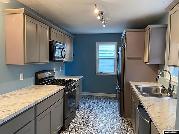 Adorable 1 Level Home. It features 3 nice size bedrooms 2 bathrooms and a two car garage. Completely remodeled with new kitchen cabinets and counter tops. Refinished hardwood floors every where except the kitchen and bathrooms which has an elegant designed vinyl flooring. Very charming and open. The two car garage is detached and there is central air and sprinkler system for the large beautiful yard.