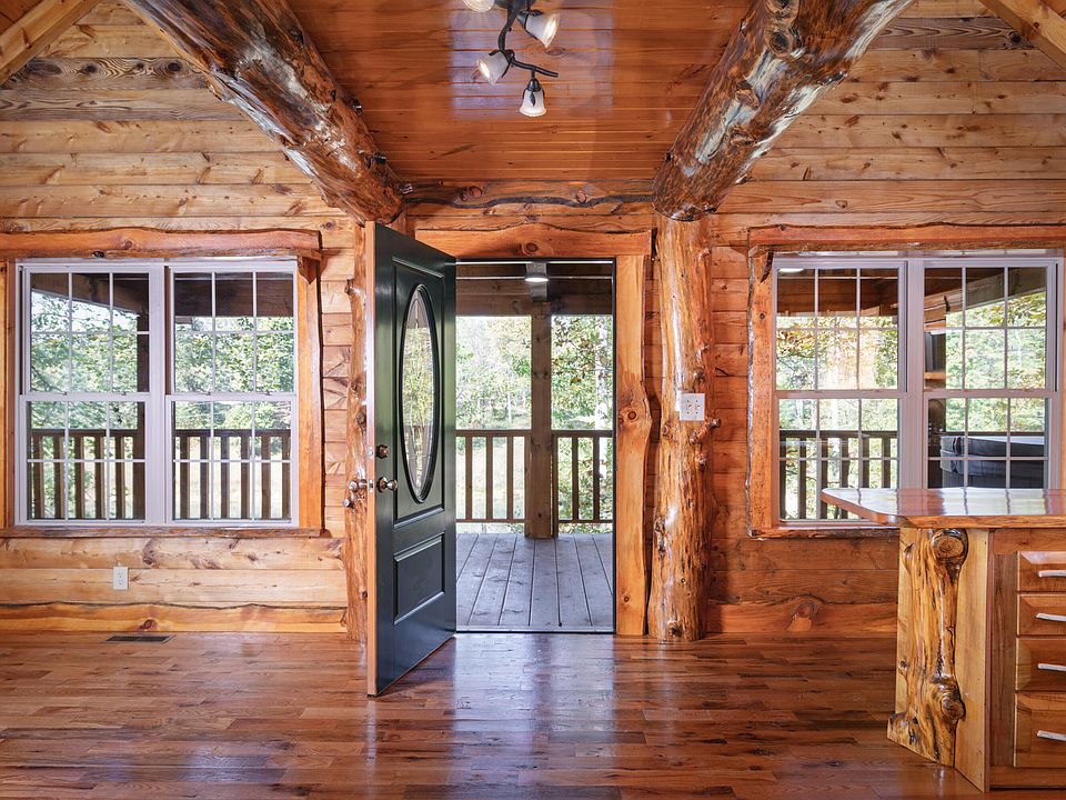 Exciting NEW PRICE on this inviting three-level cabin which offers the perfect blend of rustic charm and modern comfort—just minutes from favorite attractions like Natural Bridge State Resort Park, Sky Bridge, Nada Tunnel, and the area's best hiking, climbing, and kayaking adventures. Featuring 2 bedrooms and 2 full baths, plus a loft that serves as a third non-traditional bedroom, this versatile layout is ideal for families or groups. Enjoy serene pond views from the wrap-around covered porch, unwind in the hot tub, or relax on the private third-floor deck surrounded by trees. The basement suite provides a cozy retreat with its own bedroom and bath, perfect for guests or added privacy since the entrance is from outside only. Whether you're looking for a peaceful weekend getaway or a great rental investment, this cabin in the Red River Gorge offers nature, relaxation, and adventure all in one. Schedule your private showing today! (Living room furniture picture and fire-pit picture are virtually staged to show the potential)