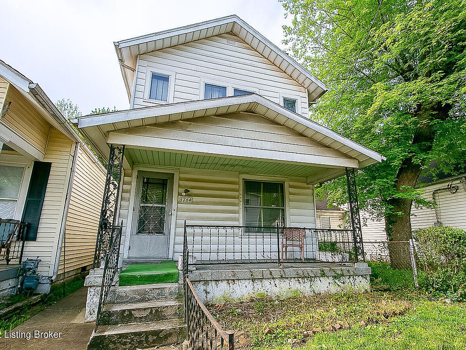 INVESTMENT PROPERTY POTENTIAL in up & coming area! Good bones with some original details like hardwood floors, wood trim & casings, French doors between foyer & living room, turned staircase to upper level & more. From the covered front porch you'll find the entry foyer open to the living room with fireplace, dining room & kitchen. The upper level features both bedrooms, one with walk-in closet, & full bath. Laundry located in unfinished lower level. Rear covered patio overlooks fully fenced yard with access to detached 2 car garage.
