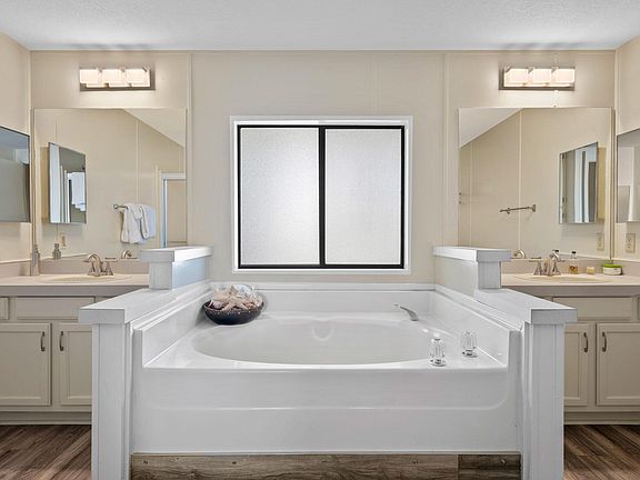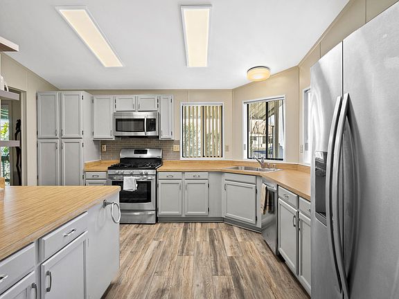 Welcome home to this 3 bed 2 bath remodeled home in a Hot Springs Mineral Spa 55+ Community. Remodeled home with vaulted ceilings, laminate wood floors and an open floor plan. Kitchen features backsplash, stainless steel appliances, gas stove, lots of cupboards and storage space and more. Open floor plan with living room and dining area both feature sliders to the side patio. Outdoor space features a large patio, grapefruit and tangelos with a small storage space. Principle suite features large bathroom with dual vanity, soaking tub, a separate shower and a huge walk in closet with organizers. Exterior features extra-long patios, a covered carport with parking for 3, a golf cart parking with charging outlet, a handicap ramp and a small storage unit. Corkill Palms is a 55+ Community with Hot Mineral Waters spa and swimming pool, a community clubhouse with billiards room and a small putting green. Space rent $402.57 Welcome Home.