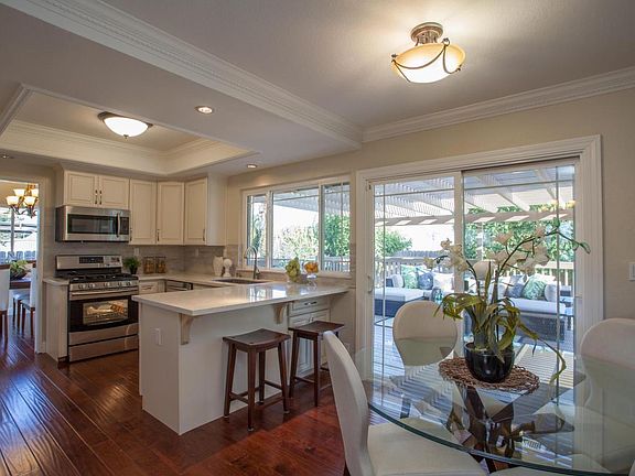 This turnkey 4 Bed & 2.5 Bath home on a half acre lot welcomes you with a beautiful living room & bay view windows allowing in plenty of natural light with formal dining area. The kitchen, which features quartz counters, stainless steel appliances, & breakfast bar, steps down into a large family room with large windows, fireplace & wet-bar perfect for hosting. Enjoy the master suite & balcony overlooking a spacious well maintained backyard.