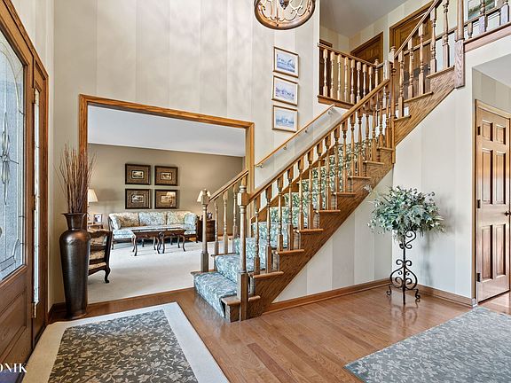 Quality built custom 4 bedroom,2.1 bath home with 3 car garage situated on a professionally landscaped interior lot (almost an acre). This home boasts of its many upgrades. As you meander the paver sidewalk to the updated front door, the home instantly greets you with a 2 story foyer, gleaming hardwood floors, formal living room and dining room which are great for entertaining. Large eat in kitchen with island, extended bump out eating area, stainless steel appliances complete with warming drawer, granite tops and custom cabinets with pull outs and double decker lazy susan and large walk in pantry, kitchen opens to family room with gas log fireplace with brick hearth and sliding glass doors to access outdoor living which is complete with paver patio and built in gas grill. Laundry is conveniently located on first floor and has cabinets and counter tops for folding space, main floor office with cathedral ceiling, spacious primary suite has tray ceiling, hardwood floors, huge walk in closet and luxury bathroom with soaking tub , separate shower with instant hot water and heated floors, additional bedrooms are all generously sized. Kitchen and bathrooms have all been updated, newer oven, furnace and A/C in 2020, Garage doors replaced to carriage style doors with new openers in 2010, Fpl converted to gas log in 2007,water softener 2016,roof, gutter, fiber cement siding in 2005. Basement is ready to be finished for additional living space and has battery back up with wifi on sump pump, omni water system whole house filter and more. Plainfield schools, unincorporated with no HOA. Must see this impeccably cared for home with undoubtedly one of the most beautiful mature landscaping in all of Williamsburg.