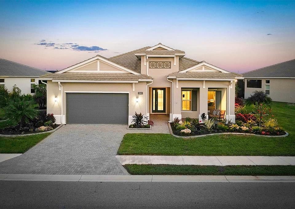 Bright, contemporary and timeless, this professionally decorated four-bedroom, three-bathroom home, showcases many luxurious upgrades for an enhanced and maintenance-free lifestyle. Picturesque landscaping sets the stage as you enter the designer front door to the stunning, stylish open concept. Your eyes will be drawn to the soaring ceilings, decorative tray ceilings with wood panel detailing and beams, sealed tile flooring throughout, and elegant finishes of the spacious great room, dining room and gourmet kitchen. Entertainer’s Dream Kitchen boasts two-tone cabinetry with an oversized island featuring ample storage, quartz countertops, tile backsplash, and stainless Jenn-Aire appliances including a gas range. Sliders open the great room to the gorgeous, screened lanai that features travertine deck and lanai, outdoor kitchen, lounge space to watch your favorite shows, heated saltwater pool 30’x15’ with water features and additional landscaping for a relaxing “Zen” environment. A den/office just off the kitchen is ideal for working from home. Two generous guest bedrooms featuring walk-in closets will delight family and visitors while the stunning master suite provides blissful solitude with a custom organized walk-in closet and a spa-like en-suite bath. Each bathroom includes walk-in showers for ease. The extensive and impressive list of upgrades made on this home includes Kohler plumbing; WiFi extenders inside and on the lanai; whole house Culligan reverse osmosis water filtration system; and in-wall pest control and in-ground pest system through Home Team. Additionally, this energy-efficient home features an oversized garage with a heat shield door and heat shield throughout the ceilings and roof. Unsurpassed peace of mind is also ensured with a whole house Generac generator, remote and manual hurricane screens on the lanai, hurricane impact windows and sliders, and a security system with cameras. The natural elements, timeless upgrades, and peaceful surrounding make this house a true home…and the best part is you don’t have to wait to build. Luxury living at The Isles at Lakewood Ranch, brand-new gated community offers a fabulous 6,500 square foot clubhouse with social room and catering kitchen, resort style swimming pool, state of the art fitness center, boardwalk and fishing pier, basketball, tennis and pickleball courts, and a dog park! The community surrounding you has bike riding and walking trails, yoga in the park, golf, frisbee golf, two main streets with farmers markets, theater, and live music. Centrally located, a short drive to the white sand beaches of Lido Key and Anna Maria Island or hop on I-75 for quick access to St. Pete, Tampa, and beyond. Lakewood Ranch was named the 2021 Best-Selling Community in the Nation and remains the #1 Multi-Generational Community in the US.