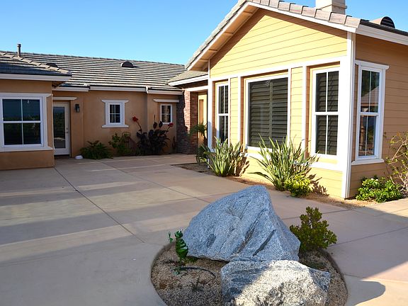 Magnificent single level executive home with Casita on over 1 acre in Woodcrest community of Nandina Groves. Enter gorgeous courtyard to home that features 4 bedrooms plus a study and 3 1/2 bathrooms. Customized features include formal living room with fireplace, recessed lighting, formal dining room, butlers pantry and walk in pantry. Extra large family room with 2nd fireplace is open to kitchen which is perfect for entertaining. Living room has Alcove which opens to a covered Loggia with gorgeous backyard views. Magnificent Chefs Kitchen features granite counters, large gourment prep island, recessed lighting, and custom cabinetry. Main floor master bedroom suite features sitting area/retreat with 3rd fireplace, master bathroom with expansive walk in closet, dual sinks, vanity, romantic soaking tub and large separate shower with seat. Jack and Jill Rooms 2 and 3 share full bathroom with dual sinks. Casita features the 4th bedroom with private bathroom, 4th fireplace, walk in closet and food prep area with cabinets and sink. Study room makes for a perfect library and could be a terrific 5th bedroom. Extras include 3 car garage, laundry room with sink and cabinets, low tax area and much more. Illustration is artists conception only.