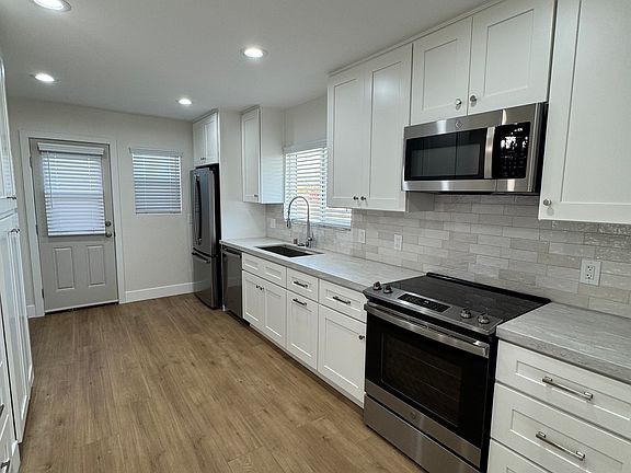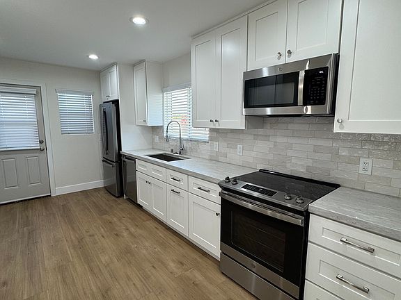 Welcome home to this fabulous find in the highly desirable Dutch Haven Marina area of Huntington Beach. This home has been completely updated including vinyl plank flooring and recessed lighting throughout, new vinyl blinds over new dual pane windows, brand new custom finished bathrooms, including showers/tubs/vanities, toilets, counters, and lighting. Brand new white, bright kitchen cabinets, quartz counters, new appliances and so much more! Custom fixtures and finishes throughout. This fantastic home has four bedrooms and two bathrooms downstairs and a large bedroom/bonus room upstairs. Kitchen has breakfast counter/island overlooking the living room and fireplace with additional bonus gathering room beyond and a new slider door to backyard. Fantastic curb appeal, 2-car garage and plenty of driveway space. Washer and dryer hookups inside with electric and gas options. Gardener service is included. Tenant to pay all utilities and carry renters insurance for entire lease term. Property has central heat but does not have AC. Tenant to provided their owner washer and dryer. An animal may be considered with additional deposit.