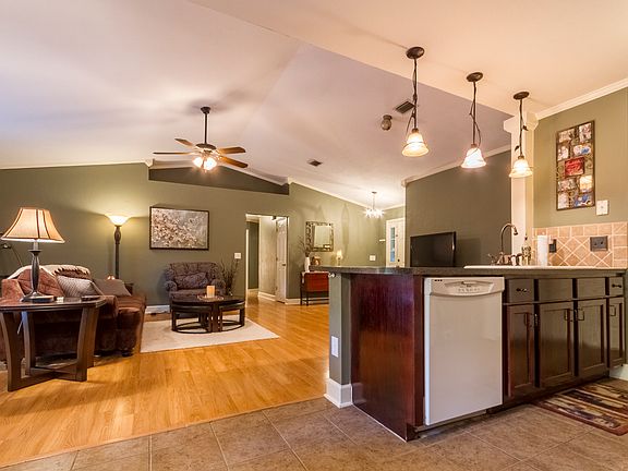 MOVE IN READY! Gorgeous home, beautiful crown molding, cherry kitchen cabinets, countertops, ceramic tile, backsplash. Laminate flooring in great room. Hardwood flooring in two bedrooms with carpet in master bedroom. Master bath has beautiful sunken tub and double sinks and tops. All matching light fixtures. French doors in great room. Plus a huge patio off great room made of pavers. Located in one of High Springs' premier subdivisions and close to High Springs Community School. (Includes: New stove, refrigerator, dishwasher, new hot water heater, new garage door, alarm system.) There is 3% to the buyer's realtor.