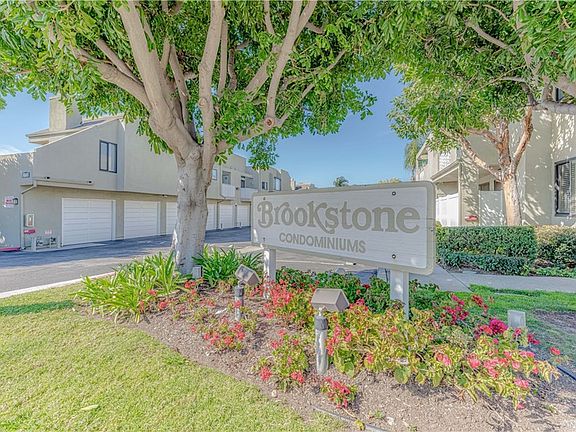 Immaculate two-bedroom, two-bathroom condo located in the tranquil Brookstone Community of Huntington Beach. This home boasts two master bedrooms with Noise-Reducing Doors. Enter and be met by tall scraped ceilings and modern stained concrete flooring. Sun-soaked and open, the living room boasts great lighting and cool breezes through the windows and patio slider. Paved and well-manicured, the backyard is bigger compared to other units. A Guava and Papaya tree are also included. Adjoined are the eating area, kitchen, and laundry closet. Upgrades featured in the kitchen include quartz counters, a new microwave, tile backsplash, and white shaker cabinets complete with pull-out drawers. French doors open up to the first master bedroom, serving as an office, offering a full bathroom and walk-in closet. The second master showcases a walk-in closet, patio slider for backyard access, and a remodeled bathroom with frameless glass shower door, quartz counter, expanded medicine cabinets, and dimmer light/switch. Ceiling fans can be found in both rooms and above the dining area. Other features of the home include forced air heating, a Nest thermostat, and rain fire sprinklers. HOA amenities include a sparkling pool, hot tub, and paid Spectrum cable/internet. Shopping and entertainment nearby include Five Points Plaza, Walmart, In-N-Out, and Bella Terra Mall. Minutes away from the 405 FWY and Huntington State Beach.