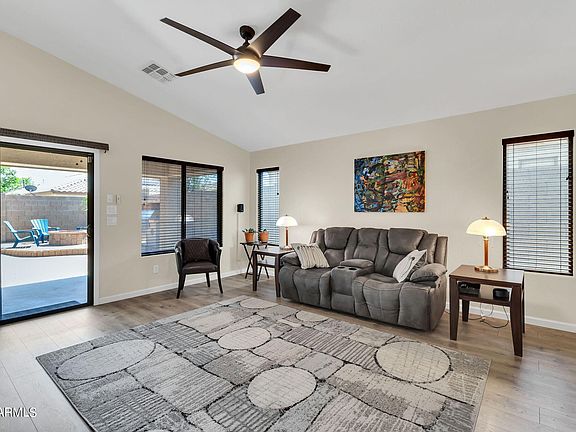 Open floorplan (with over 2,100 Sq. Ft.), huge kitchen, granite counters, walk-in pantry, center island, breakfast bar, and eating area. Plus, there is a formal dining room. Master suite has a walk-in closet and full bath (with a garden tub and stall shower). This home has a living room plus a family room. The backyard is fully enclosed with 6' tall block walls. Covered patio with motorized sunscreen. The firepit and BBQ both have natural gas. New Trane AC/Heat Pump, 18 Seer, 5 Ton (replaced in 2022, cost $11,000). Dishwasher and disposal replaced in 2022. Pergo XP extreme performance flooring (installed 2017). Recently painted in & out. North-South exposure. Close to park and trails. Walk through this entire home by watching the 3D Virtual Tour (with floorplan) attached to this listing. The 3D Virtual Tour and walkthrough has a tape measure which you can use to see if your furniture will fit wherever you want to place it in a room. You can see EVERYTHING by scrolling up and down and from side to side on the 3d Virtual Tour. This home has been lightly lived in and well cared for by the current owner... and it comes with some wonderful upgrades for comfort and to save you money. Check it out soon before it is sold.
