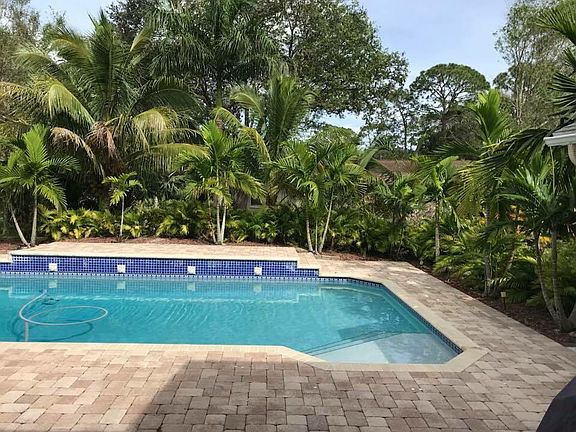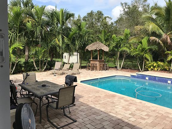 Beautiful CBS 3 bedroom, 2 bathroom plus den/office Pool Home on 1.25 acres, fully fenced corner lot in Jupiter Farms. Kitchen features granite countertops with stainless steel appliances, tile in the main living areas, and laminate wood flooring in bedrooms. Master bedroom has sliding glass doors leading to pool, with lush landscaping, complete with tiki-bar! Master bathroom has dual vanities, soaking tub, separate shower and walk-in closet.