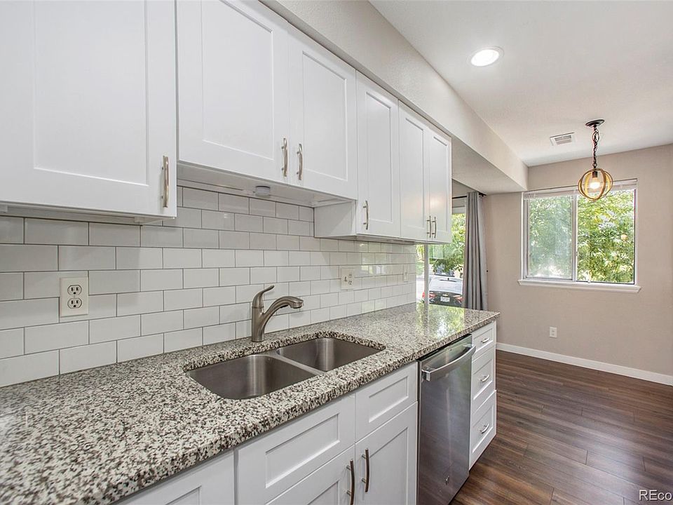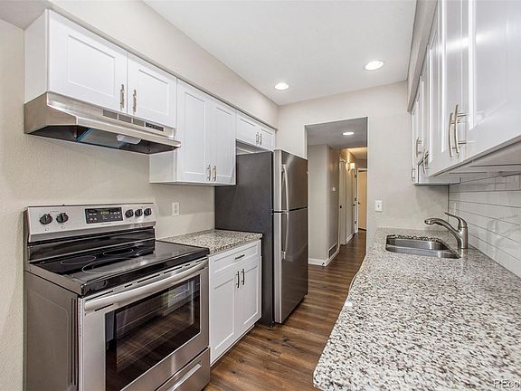 Incredible Value!!! Beautifully remodeled 2 bedroom, 1 bath available in Cherry Creek School District. The Kitchen features white shaker cabinets, granite countertops and stainless appliances. It opens to the adjacent Dining Room, which itself is open to the Living Room with a wood burning fireplace. Moving down the hallway, the nice size Guest Bedroom is first on the right, followed by a large Primary Bedroom with it's own private sink & vanity and direct access to the Bathroom. The Bathroom is nicely updated with stone counters and newer fixtures. Outside, the covered patio is a nice spot to relax. Community is adjacent to the West Toll Gate Creek trail with convenient access to shopping, restaurants, retail and transportation. Amazing opportunity at a great price!!!