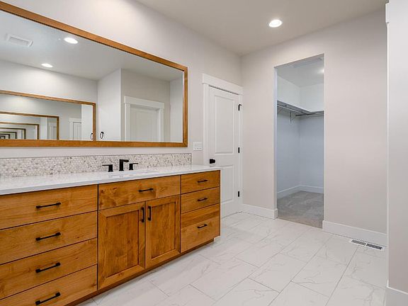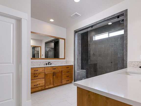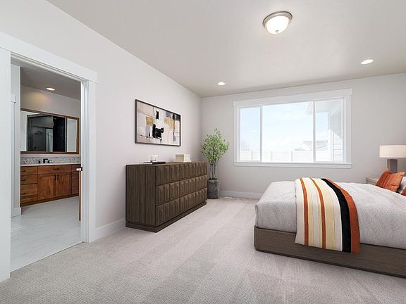"The Graham" with bonus room. This exquisite home features open floorplan flowing from the entry through the great room and formal dining room. Kitchen features large island with breakfast bar and plenty of cabinet space and overlooks the extended covered patio. Luxurious primary suite on main floor tucked away for extra privacy. Enjoy the tranquility of the primary suite with dual sinks, large luxury tile shower and walk in closet. Upstairs find a large bonus space. Home also includes a washer and dryer, water softener and front and backyard landscaping. 3 car garage. BTVAI.