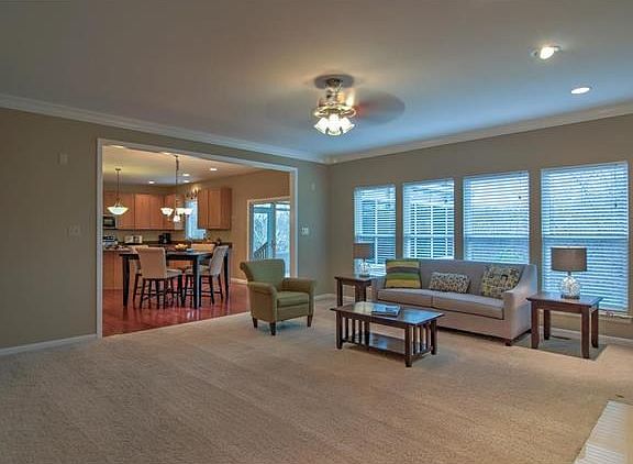 This 4 bedroom 3.5 bath 1.5 story home is meticulously cared for and move in ready! A well-manicured lawn, 3 car garage and low maintenance siding enhance the curb appeal and welcomes you home. Dining room is ready for formal entertaining, complete w/ custom light fixture. Great room has cozy gas fireplace and built in bookshelves. Gourmet kitchen has 42ââ cabinets, granite and storage galore, stainless steel appliances, Brazilian cherry floors, center island, planning desk, pantry and newer lights. Breakfast room has slider to vaulted 3 season room that overlooks a treed backdrop. Main floor master ste boasts WIC and lux bath with ceramic tile, dual sinks, soaking tub and sep shower. UL has 3 beds, 1 w/lg walk in closet, private bath, JnâJ bath and lg bonus room. Other features: 2ââ blinds, paver patio, new roof, hi eff furnaces, main flr laundry, 9 ft ceilings on main flr, crown molding, chair railing, ceiling fans, recessed lighting, storage, zoned HVAC, sprinkler, alarm and MORE!