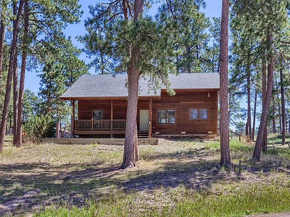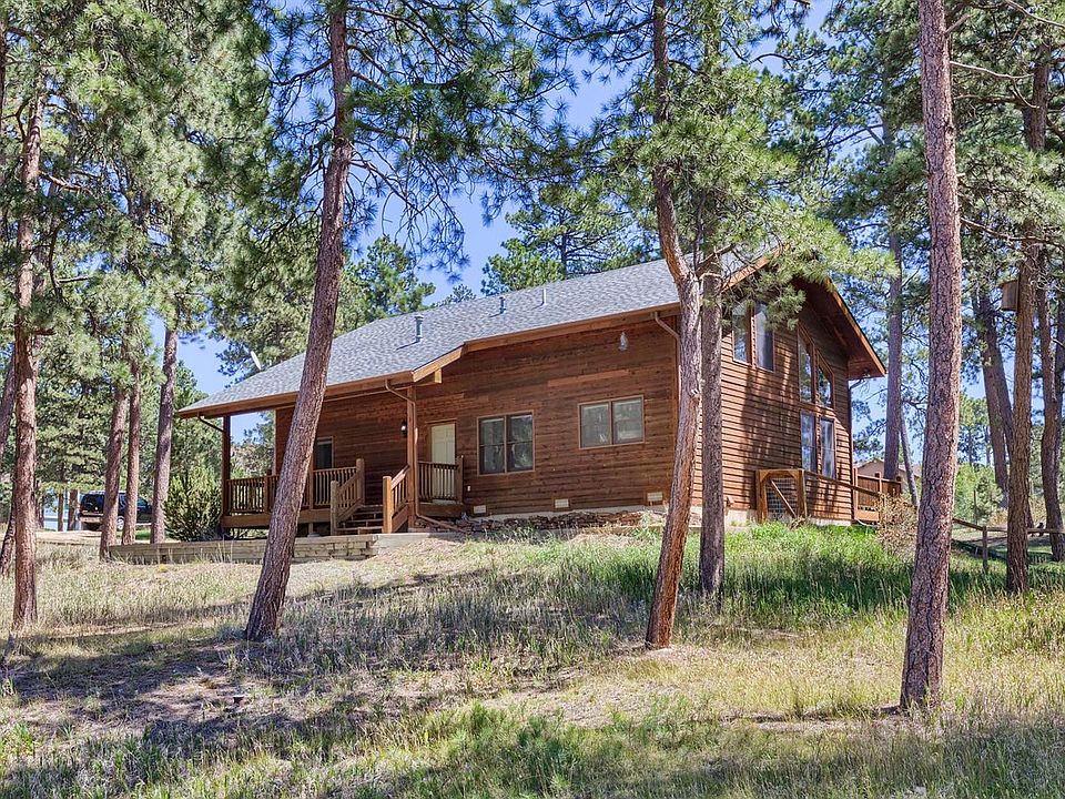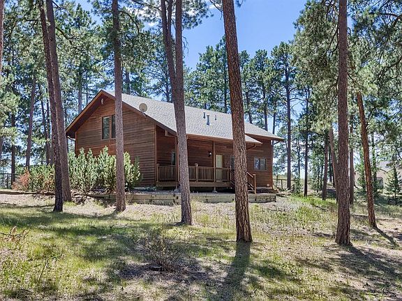 Serene setting in the tall pines! This one of a kind, contemporary mountain home is nestled on a beautiful corner lot surrounded by mature trees with a large covered front porch on a quiet culdesac. Area of newer, high end homes. Sunny two story great room with gas fireplace (wood burning stove look) and access to rear deck for easy outdoor living. Newer corian countertops in kitchen and master bathroom. Brand new carpet. Convenient upper level laundry room. Extra storage in two attic areas plus outdoor storage shed. Oversized, heated, finished garage. Close to Kilmer Elementary school in Lewis Palmer School District #38. Brand new roof installed-warranty transferred to buyer at closing. Fence in "As Is" condition. Call this home today!