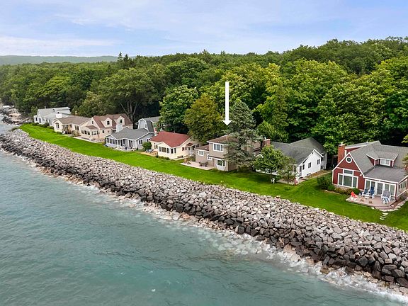 Welcome to the Cottage Colony at Camp Arcadia—where Lake Michigan living meets timeless tradition. Nestled in the heart of Arcadia’s historic waterfront community, this rare offering features 50 feet of private frontage, a newly installed break wall, and sandy beach access via the Colony Beach Access Park. The home includes four bedrooms, two half baths, and an attached garage with extra storage and a third half bath—perfect for rinsing off after a beach day. Unwind on your deck and take in sweeping views of Lake Michigan’s turquoise waters and vibrant sunsets. Ownership includes access to Camp Arcadia’s amenities (subject to LCA application and approval), including tennis and basketball courts, playgrounds, beaches, shuffleboard, hiking trails, and more—all part of a community with a peaceful, no short-term rental policy. Just minutes from Arcadia Bluffs Golf Club, Arcadia Marsh Nature Preserve, and world-class trout streams—with Crystal Mountain’s year-round recreation close by—this is a unique opportunity to own a piece of Pure Michigan history in a one-of-a-kind lakefront setting.