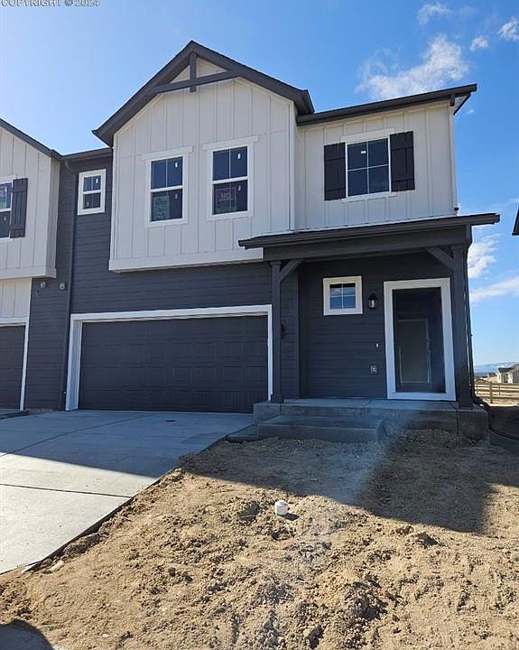 Ready in April. Mesa 2-story plan with 2 car garage in the new Monument Junction Cadence Collection neighborhood. 3 bedroom, 2.5 bath home. Farmhouse style exterior. This home is one side of a duplex. Kitchen features maple Shaker-style cabinets in a pecan finish, sophisticated honed Black Mist granite countertops, island, pantry, and stainless steel appliances including gas range. The rear patio is conveniently accessed through sliding glass doors off of the dining room. Step in from the insulated, drywall finished garage into a large owner's entry with plenty of room to personalize with a bench or piece of furniture for more storage. The upper level master bath showcases an expanded shower with seat and sleek frameless shower surround, double sinks, and large walk-in closet. The master bedroom is separated from the additional 2 bedrooms creating a quiet, serene space. The upper level also hosts a loft with bright windows and a laundry room. Home comes equipped with air conditioning and smart home package. Home is located in a covenant controlled community.