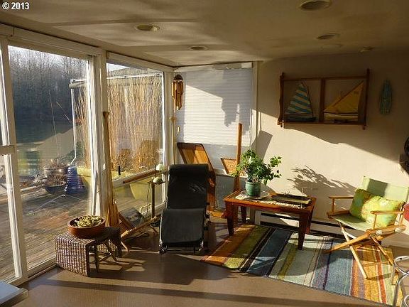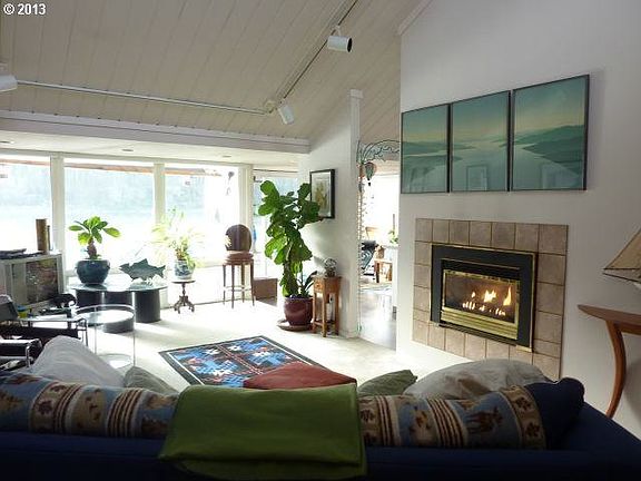 Live close to nature and enjoy panoramic views from this outside slip in desirable Sauvie Island Moorage. Lots of windows make this home light & bright. High soaring vaulted ceilings and gas fireplaces in both living room & master bedroom. Remodeled to the studs in 1998. New plumbing, electrical, double windows, logs and stringers. Second bedroom with loft area is perfect for office or guest bedroom. Plenty of outside storage sheds. Quiet and serene!