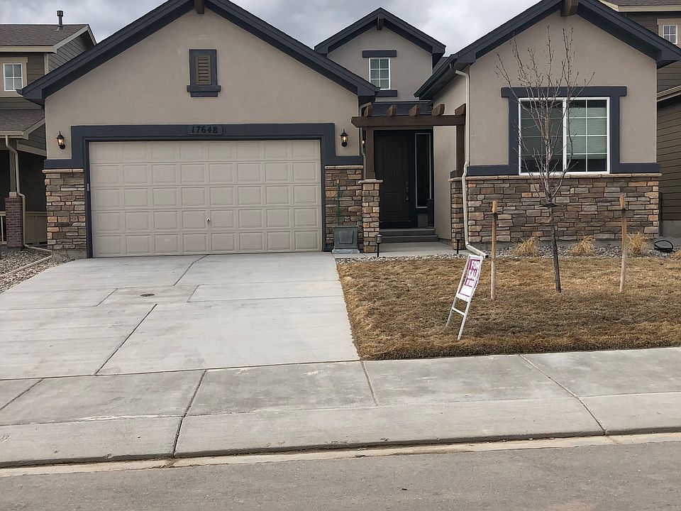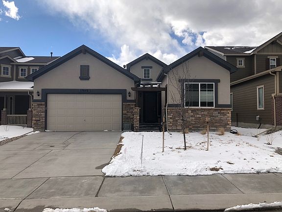 One year old ranch home. Landscaped & move in ready. Brick and stucco exterior. As you enter you are greeted by 10 ft ceilings throughout the main level. The kitchen has been upgraded since original purchase with 42" cabinets with crown molding as well as a gas stove and a large island for entertaining. The master bedroom is attached to a 5 piece bathroom with granite counter tops, square undermount sinks, a custom spacious walk-in closet and you have direct access from your master bedroom to your laundry room. Finished basement with wetbar. Home has had numerous upgrades and is move in ready. Upgraded lights, fixtures and ceiling fans, bathroom granite & shower surrounds, laundry room cabinets, finished basement. Beautiful stone fireplace. New AC installed. This private lakeside community nestled in the foothills of the Rocky Mountains and located by Monument Lake. There are walking/biking trails near by.