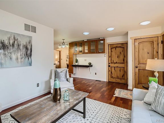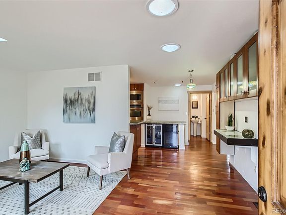 Fantastic 3 bed, 2 bath ranch home in Parker. Beautiful Cherry floors welcome you into an open floor plan. Custom built-in cabinetry adds a convenient office option or home command center for audio visual components. The kitchen is well-equipped with stainless steel appliances, a five burner gas cooktop, wine/beverage rrs and a pull out pantry. The adjacent dining room creates a comfortable gathering space nestled next to the doors leading to the covered patio, creating a fun indoor/outdoor entertainment flow. The main level primary bedroom has a comfortable layout with ensuite bathroom, oversized custom walk in-closet with organizers. The closet is it's own multi-use room with a separate glass vanity and washer and dryer. The primary bedroom also has beautiful decorative French glass doors that open to the charming backyard with established trees and TREX deck system.