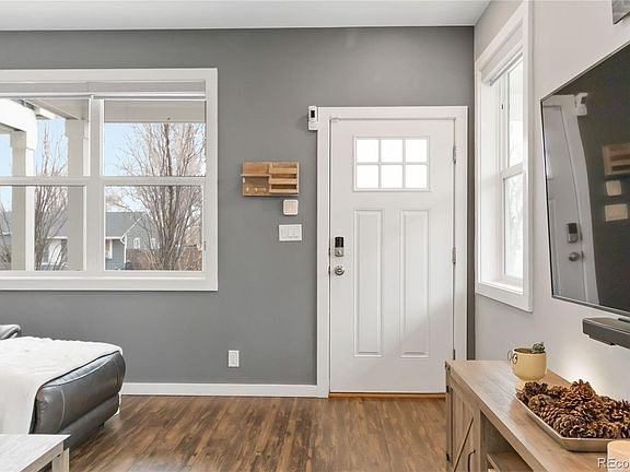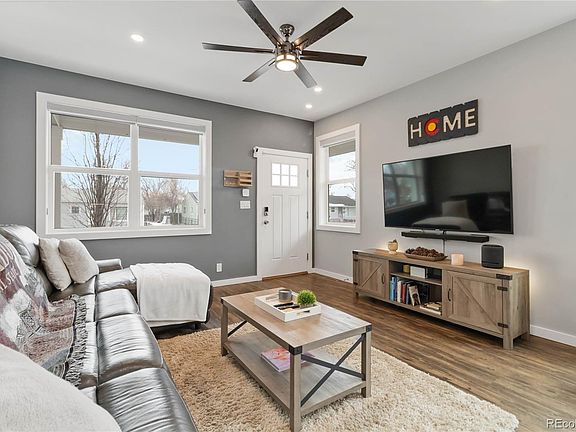 This like-new townhome is a must-see! It has everything you need, plus easy access to all Denver offers. This home features a sunny, spacious family room, a beautiful kitchen, and a fenced backyard. A covered, wrap-around front patio and tasteful landscaping provide a warm welcome. Inside, enjoy an open floor plan with upgraded paint, a bright living and dining area, and a well-appointed kitchen with soft-close cabinetry, pull-out shelves, contemporary tile backsplash, and a large quartz island. Stainless steel Whirlpool appliances, including a built-in microwave, complete the space. The main-floor laundry room includes extra storage. Step onto the patio off the dining area, perfect for grilling or retreat to the backyard and gather with friends. The private yard is fully fenced and large enough for pets. Upstairs, the luxurious primary suite features two closets, a private bath with dual sinks, and an oversized shower. Two additional bedrooms share a stylish bathroom. All bedrooms include ceiling fans and large windows. Stay comfortable year-round with Carrier air conditioning, a high-efficiency furnace, and a Nest thermostat. This home has been upgraded with a tankless hot water heater and a whole-house water filtration system. The two-car garage has plenty of room to store your gear and includes an electric charging station. The low-maintenance, xeriscaped yard makes for easy living. From here, it's an easy walk to Stanley Marketplace, where you'll find over 50 local shops and eateries. You're also right next to Central Park and its Westerly Creek to Denver trail system. Get to downtown Denver in about 20 minutes and the airport in less than half an hour. Schedule your showing today—this move-in-ready home won't last!