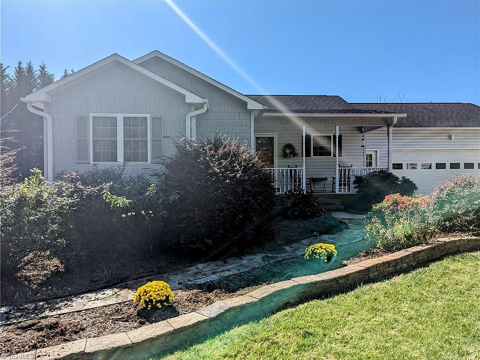 Charming ranch just minutes from King. 3 bedrooms and 2 baths on the main level. 2 car garage on the main level and a bonus basement garage. The finished basement is perfect for a second living space. Don't miss the many outdoor entertaining features. Relax on the new trex deck, or in the hot tub on the covered patio. Enjoy the patio surrounded by mature landscape featuring a fire pit and outdoor kitchen with a built in gas grill and hot/cold water. The carefully planned landscaping is planted so that you will see blooms year round. You will also be able to harvest, cherries, apples, pears, figs, blueberries and blackberries from the yard! Come see this beautiful property today!