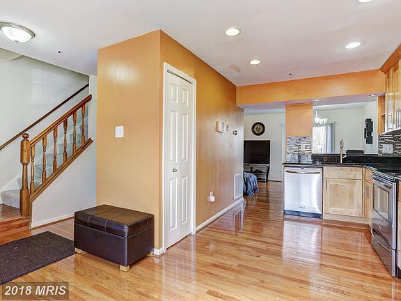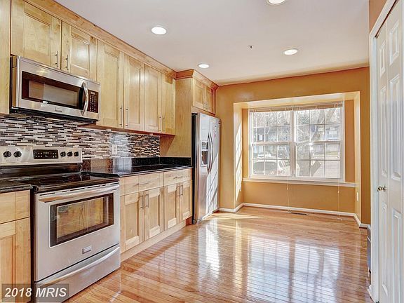 Beautiful townhome close to major commuter routes, shopping& dining. Freshly painted interior spaces& hardwood floors throughout the main& upper level. KIT w/SS appliances, tiled backsplash, granite counters& breakfast bar. MBD w/vaulted ceiling& en suite bath w/ ceramic tile& skylight. Fully finished lower level family room, laundry area& walkout access. Deck overlooking private fenced yard.