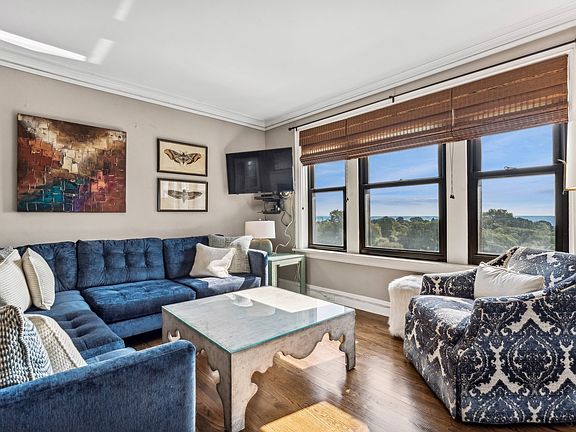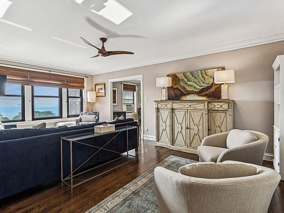 Spacious one bedroom in the desirable Parkshore cooperative with panoramic lake views. Beautiful hardwood floors and decorative fireplace. Formal dining room with French doors leading to a private balcony with amazing park and lake views. The open kitchen has been renovated with Corian countertops and stainless steel appliances. The building features 24hr doorstaff, party room, exercise room, bike room, laundry room and beautifully landscaped back yard. A must see located near the lake, Promontory Point, The Museum of Science and Industry, shopping and dining. Pet friendly