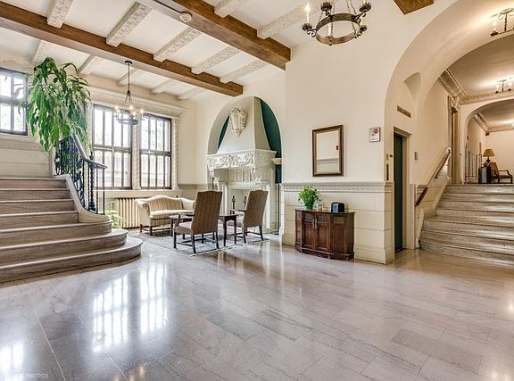 Perfect for the discerning buyer looking for an exceptional purchase price & a high style of living. Assessment incl taxes, heat, internet, cable TV & so much more. Sunny top floor, 1700 sf home in the Park Shore, an elegant 1920's co-operative building, has lovely city, park & lake views. Extremely spacious side-by-side living & dining room. Updated kitchen has granite counters, extended cabinets & built in pantry storage. Two large bedrooms reside in their own wing, master with professionally designed walk-in closet. Two full baths with recently re-glazed tubs & tile. Hardwood floors, in-unit washer & dryer, & abundant closet space. The Park Shore offers 24 hr door staff & maintenance, a fitness room, a garden & an on-site guest room. On-site parking is by wait list. Off-site monthly parking just steps from the building. Located adjacent to Hyde Park's 55th St. Point, the lake & parks, the Museum of Science & Industry, public transportation, shopping. 2017 taxes are $2,684.74.