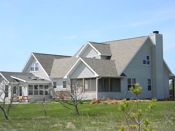 Wonderful country home on 10+ acres near Ellison Bay. Great open concept floor plan with first floor master suite. Wood burning fireplace. Relax in the screen porch overlooking the backyard. Two spacious second floor bedrooms plus a large bonus room (bunk room, media room, exercise or office). Many extra features in this custom home. Nice landscaping with perennial beds, fruit trees and garden. There's an attached 2-car garage, partial basement, attached potting shed and lawn shed. You will hear nothing but the birds in this peaceful setting and be minutes from all the conveniences. (Also includes Tax Parcel #018-02-22322824G vacant 5 acres)