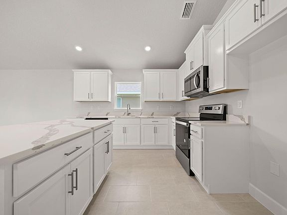 FBC lender. EXPRESS MOVE-IN HOME appliance pckg! PLUS, 10K Flex CASH!!!! Difference from a 4.99% rate to a 6.99% is approximately 482.00 a month. $1000 Deposit and All CLOSING COSTS PAID up to 7500! excluding escrow account when using our preferred lenders. NO CDD. This new and highly desirable gated community w/ pool & cabana is just minutes from Historic Melbourne. The 3/2 home features an open floor plan w/10 ft vaulted ceiling, TILE IN ALL LIVING A REAS and 10 X 20 trussed porch. Kitchen features all wood white cabinets w/crown molding and quartz countertops (baths also), SS appliances & pantry with quartz countertops, kitchen island, and plank tile in all living areas except bedrooms. An owner's suite w/ large walk-in tiled closet, shower and tub separate. Home includes: Taexx pest prevention system, double pane (low E) windows. * All Incentives for a limited time only.