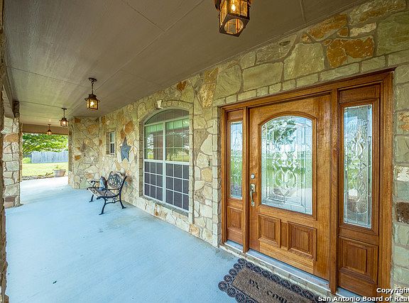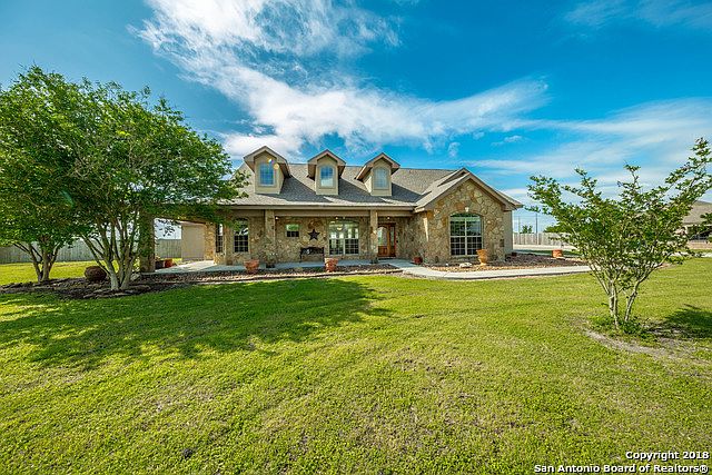 Elegant high-end home on a 1.99acre lot in a peaceful area near New Braunfels, TX. This home boasts tons of upgrades including, wood and large tile flooring, high ceilings, crown molding, upgraded appliances, superb granite, beautiful fireplace, jetted tub, oversized shower, four car garage, huge pavillion, wraparound front porch, multiple covered patios and a high composition roof. Minutes from New Braunfels and close to the Guadalupe River this home is a dream come true!!!