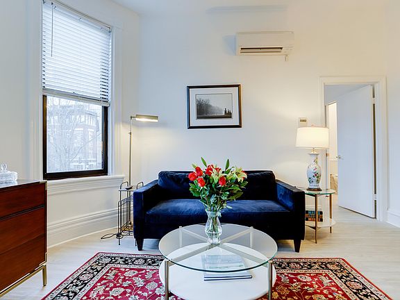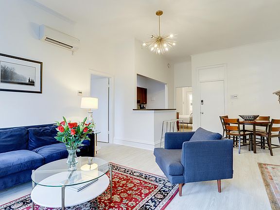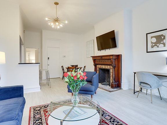 Enjoy living in this spacious, sunny, fully furnished 2-bedroom, 2-bathroom, 2nd-floor Victorian condo in the heart of Dupont Circle. Featuring 9-foot ceilings, original hardwood floors, an updated kitchen with granite countertops, a dishwasher, an original decorative fireplace and crown molding, mini split a/c, plus a private in-unit washer/dryer and bike storage. The master bedroom includes a king-size bed and ensuite bath. The second bedroom includes either a king bed or convertible to two twin beds. The living room features large sunny south-facing windows, HDTV and cable, and a decorative fireplace. The master bedroom includes a king-size bed and ensuite bath. The second bedroom includes either a king bed or convertible to two twin beds. The living room features large sunny south-facing windows, HDTV and cable, and a decorative fireplace. Parking garage and spots available in the area. Located in DC's most walkable neighborhood of Dupont Circle, restaurants, shops, grocery stores, entertainment, and parks are within footsteps. Just a few blocks to Dupont Metro. Walk Score: 100 (Walkers Paradise), Transit Score: 91, Bike Score: 94.