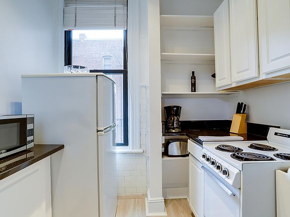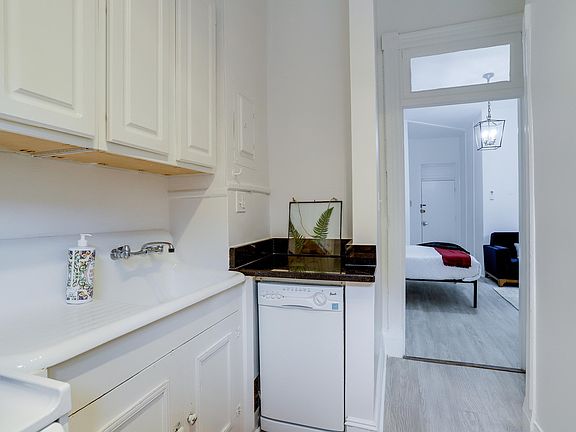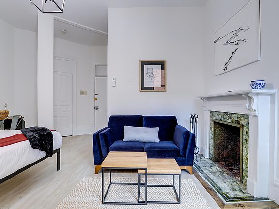 Feel at home in this fully furnished studio apartment located on the 2nd floor in the heart of Dupont Circle. The apartment features 9-foot ceilings, original hardwood floors, an updated kitchen with granite countertops, a queen-size bed, a dishwasher, an original decorative fireplace, crown molding, a mini-split unit A/C, and an in-unit washer and dryer. Additionally, there is bike storage available. The apartment's updated kitchen is equipped with granite countertops and a dishwasher, making meal preparation a breeze. The original decorative fireplace and crown molding add a touch of elegance to the space. Situated in DC's most walkable neighborhood, Dupont Circle, the apartment is surrounded by restaurants, shops, grocery stores, entertainment, and parks, all within footsteps. It is just a few blocks away from the Dupont Metro, boasting a Walk Score of 100, a Transit Score of 91, and a Bike Score of 94.