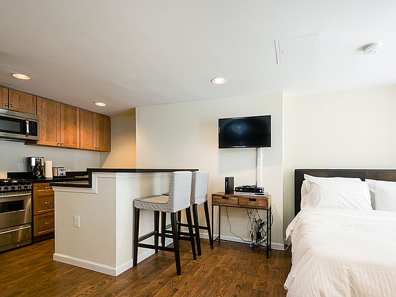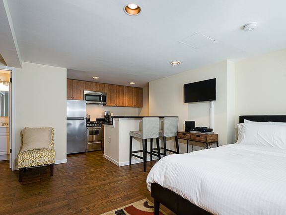 A newly renovated English basement Victorian era studio in a picturesque DuPont turn of the century brownstone mansion. This studio apartment features 9 foot ceilings, new floors, updated kitchen, granite countertops, stainless steel appliances, gas stove, and dishwasher, original decorative crown molding, brand new energy efficient windows, a separate HVAC system for private safe air quality and an in-unit washer and dryer. Sleep peacefully in a queen hybrid bed, and an en-suite bathroom with plenty of storage. All Sojourn cleaners are certified in cleaning practices based on guidelines from The World Health Organization, Center for Disease Control and Prevention, US Occupational Safety and Health Administration, and the US Food and Drug Administration. Sojourn, A Turnkey Luxury Experience. We've hosted over 10,000 guests in 50+ spaces with an average rating of 4.8 stars. Each space is handpicked, in unbeatable locations and is designed and run by us. A Sojourn space is carefully curated, thoughtfully designed, complete with beautiful and comfortable furniture. Sojourn, at our core hospitality. All Sojourn homes come with: - 24/7 support via text, email, or phone - Coffee, fresh towels, and bathroom essentials provided - Immaculately clean homes - Self check-in - Fully-equipped kitchen - Superior quality mattresses - The most comfortable, welcoming linens you have ever slept on - Blackout shades or curtains in every room - Giga Blast Business Speed WiFi