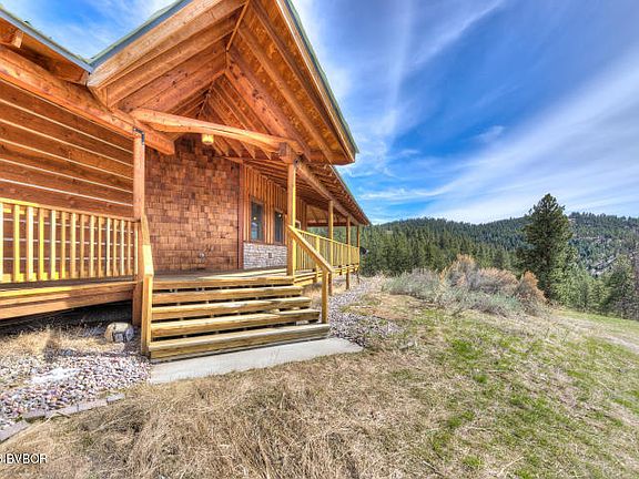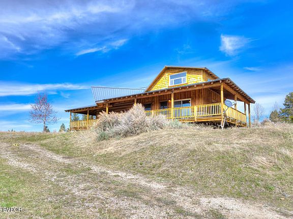 Awesome cabin style home bordering Forest Service with unique artistic details privately situated at the end of the road with top of the mountain views overlooking the Bitterroot Valley below and the Como Peaks. Great floor plan with master bedroom on the main level, beautiful beams, custom wood work and wood floor. The living/dining and kitchen area feature glass sliding doors opening to the wrap around covered deck. Exterior features include a mix of meadow and trees, shop and natural landscaping. Very cozy and just 15 minutes from town.