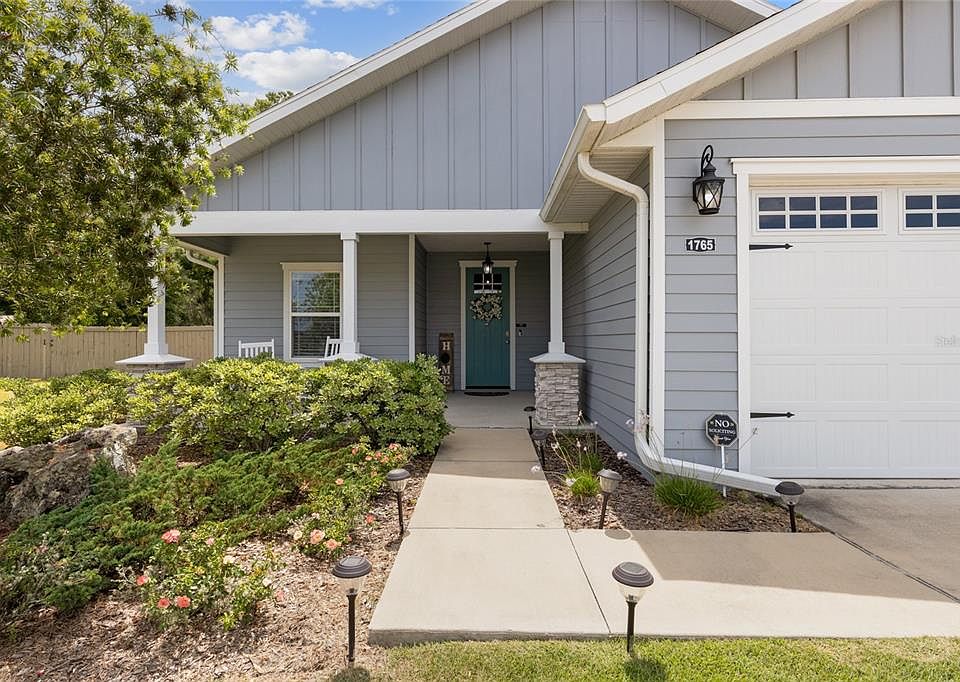You didn't miss your chance! The buyer got cold feet, no inspection was done. Better than new! This former model home exudes elegance and charm at every turn with a minimum of over $10,000 worth of upgrades! From the premium lot to structural upgrades, you just can’t get ALL these anymore, not even from the builder! This spacious 3 bedroom, 2.5 bath home is 1791 square feet and has been meticulously maintained and has no carpet anywhere in the home! The spacious, open concept living area is perfect for entertaining guests or enjoying cozy nights in. There are double tray ceilings in both the living and dining rooms both with crown molding. The sellers had the builder extend the cabinets and quartz countertop on the stove wall, giving you even more food prep area or more space for your crock pot, rice maker, blender or air fryer. The island has an undermount, porcelain, farmhouse sink and custom-installed farmhouse decorative trim. Stainless steel appliances, ample storage space, and a large pantry are all noteworthy upgrades. Retreat to the luxurious primary suite at the back of the home, featuring a tranquil ensuite bathroom with split dual vanities, a gorgeous walk-in shower with a zero-entry (no big step up or down) and a tile bench. The primary bedroom closet has a custom closet system, offering functionality and style. Two additional guest bedrooms (one currently being used as an office) and another gorgeous full bath with tub and shower combo. One of the highlights of this home is its oversized .31 acre, premium lot, (a $5,000 upgrade) offering plenty of space for outdoor activities and potential expansion. Relax and unwind on the screened-in back porch, where you can enjoy Florida weather year-round. Additional features include an inside laundry room, custom blinds in every room, including the garage, and dustless blinds on the French doors leading to the backyard. Surround sound hard wired into the home is yet another upgrade that will allow you to immerse yourself in your favorite movies or playlists! Enjoy the convenience of a smart home system with security that can be monitored. Located in the incredibly convenient community of Grand Oaks, this home provides convenient access to shopping, dining, entertainment, and top-rated schools (Buchholz High School). The community has a pool, playground and sidewalks! Close to University of Florida, Shands, HCA (Formerly North Florida Regional Medical Center), tons of shopping and a quick drive to I-75. Don't miss the opportunity to make this home your own. Schedule a showing today!