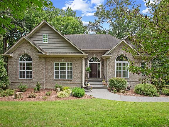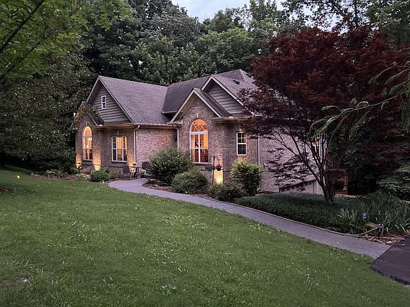 Owner/Agent - Original owner selling custom built brick home. Location of home is super convenient while experiencing the tranquility of the property and home. 1.8 acres has 500’ of road frontage. The home is full brick. Brazilian Cherry hardwood floors and soaring ceilings in LR, BreakfastRm and DR, 9’ in Bedrms and 9’+ lower level! Kitchen has furniture grade custom cabinetry, pantry and adjacent laundry room, all w/ceramic tile floor. Abundant closets throughout. The walk-out basement has a great room, kitchenette, bedroom, flex room and full bath w/shower. All areas have stained concrete floor and open to the garage (25x23) and screened porch with galvanized roof ceiling. Main level has 3 bedrooms all with beautiful views of the property. The Primary bedroom is a sanctuary with trey ceiling and sitting room that looks out onto wooded property. Stunningly serene views! Enjoy the photos to sample a taste of The Ridge. (Yes, we will be moving the landscaping rocks, again!)