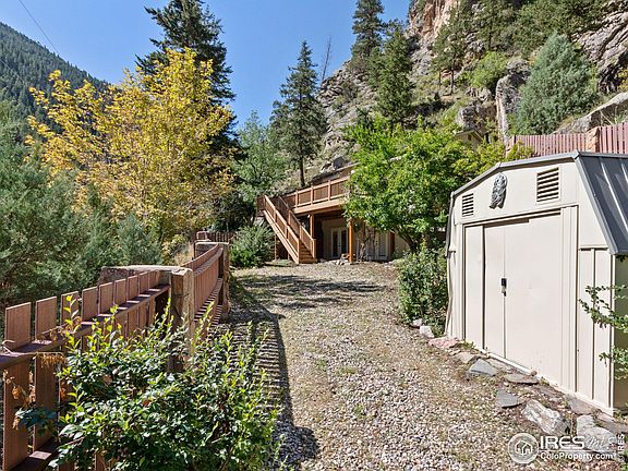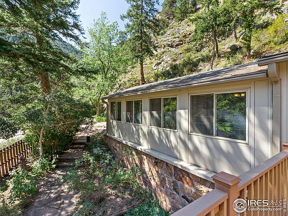 PRICE IMPROVEMENT. Cozy canyon cottage nestled on the side of the mountain overlooking the Big Thompson, yet NOT IN FLOOD ZONE. This home features a sunroom off the front and the side of the house, so you can grow your flowers year-round. Living, dining, bedrooms are spacious. Eat in kitchen is a plus. Large windows throughout to take in views from all angles. Separate entry lower level is flexible space to use as a rec room or finish it out & rent it. The garden is a floral oasis welcoming one to relax & breath in the scent of lilac.
