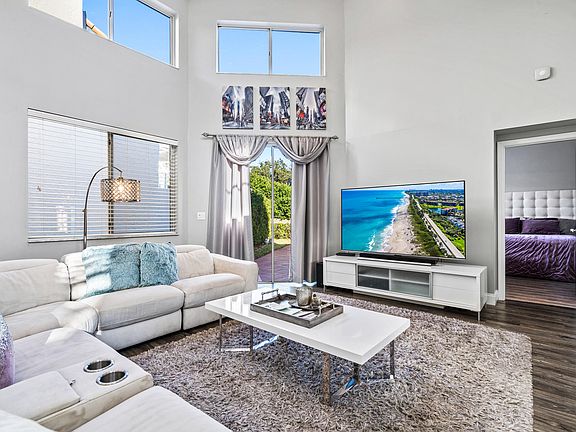 Welcome home to South Florida living in the beautiful confines of the Boca Country Club! No Mandatory Club membership! World class public golf course. Remodeled 3 bedroom, 2.5 bath home, 1 car garage with a private pool. Master-suite is on the main level. 20' vaulted ceilings in the living room. Spacious open floor plan, with added office space to the side of the kitchen. Dry bar downstairs adjacent to dining. Two additional bedrooms, full bath, and loft upstairs.2020 ROOF, 2019 AC,LED/mood lighting, Nest system, Quartz counters, oversized shaker cabinets, amenities, 24-hour manned gated community. A-rated schools, I-95, and the beach are just miles away! See you soon.