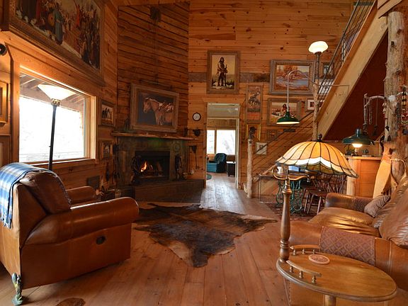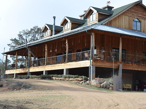 Fabulous two story home plus basement. Nestled among thousands of pine wooded acres of Ruger Ranch Phase 3. This home boasts natural wood construction throughout. Wood slatted floors and walls. Even the counter tops are from a hard wood oak floor of a home in Phoenix built in the 50's. The Range and Oven is AGA brand from England with a gas range and electric oven. Two huge master suites with closets large enough to be the size of some bedrooms.The down stairs master bath has a jetted tub. The upstairs master bedroom has a built in Murphy bed which conveys with the home. See the pictures and you'll understand the size of the rooms, bath rooms and closets. The wrap around patio is humongous,40ft on the East and West sides and 84 feet on the south side. Over 18 acres but seems like hundred