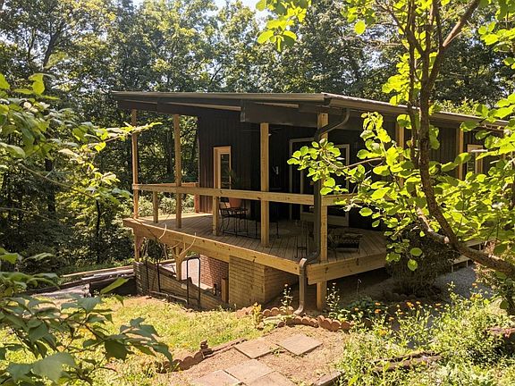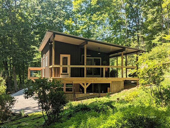 This thoughtfully built home is set high on a ridgetop surrounded by 11+ acres of dense woods. The owner started with a poured foundation and rebuilt it into a functional, easy to maintain home on a gorgeous lot. Perennials, landscaping and native plants adorn the property. Inside you'll find an open layout, ample natural light and beautiful scenic views from every angle. The open floor plan leaves many options with the kitchen and living spaces. The bedroom has access to the side deck and the full bathroom is spacious with W/D hookups ready to go. In the unfinished basement you'll find tons of room for storage, potential for additional finished living space and a wonderful patio area. House includes all new plumbing, electric, on demand hot water tank, 2 Carrier mini-splits for heating and cooling, wrap around covered porch, metal roof, a private balcony/deck and so much more!!! Federal Hocking School district, just 15 minutes from E State Street. Shared driveway will be available for 3 months after closing- ask for more details!