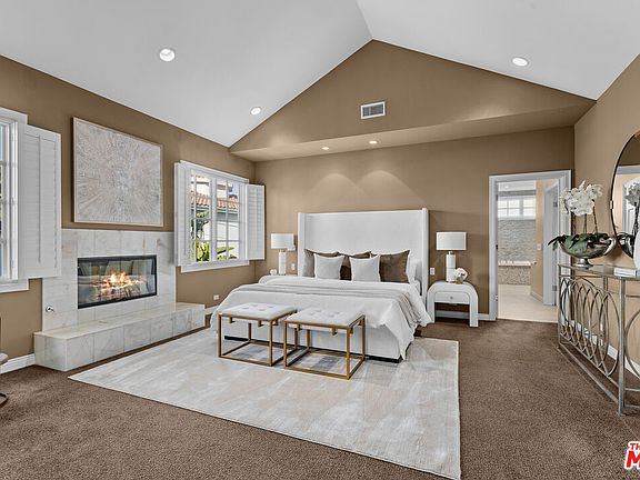 Set behind private gates on a cul-de-sac of six homes, this elegant South of the Boulevard estate is ideally situated in one of Encino's most sought after neighborhoods. This meticulously maintained 4 bedroom, 4.5 bath home spans 3,667 sq.ft of refined living space on an expansive 10,394 sq.ft lot. Stone facade and manicured landscaping welcome you upon entry with polished stone flooring, complimented by a 2-story ceiling. The formal living room seamlessly connects to the family room with a custom marble fireplace, with French doors leading to the resort-style backyard, and with easy access to the kitchen and breakfast area. The chef's kitchen is outfitted with an almost new Sub-Zero refrigerator, Viking appliances, granite countertops, custom wood cabinetry, large pantry and center island. A custom designed office with top-of-the line built-ins awaits, with an equipped gym area. All bedrooms are on the second level. The stunning master suite features vaulted ceilings, marble fireplace, dual walk-in closets, and a spa inspired bathroom complete with dual vanities, his-and-her commodes, spa tub, and glass enclosed shower. The backyard retreat features a saltwater pool and spa with a water feature, framed by mature palms and lush landscaping. Additional highlights include a custom built storage room with built-in shelves, a hardwired security system, and a GENERAC generator. Located in the heart of Encino within a top-rated school district and only moments away from everything the Valley has to offer - this is a rare opportunity to enjoy privacy, luxury, and convenience.